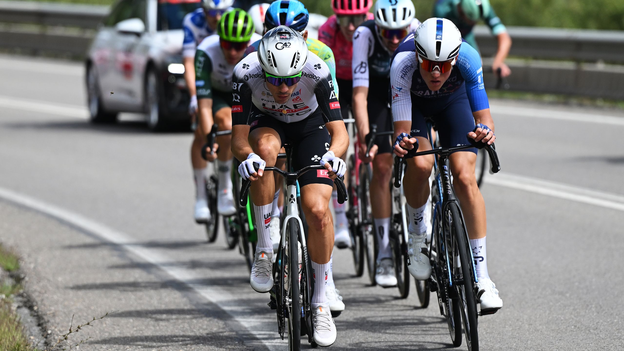 Marc Soler mène toujours le train pour son coéquipier Joao Almeida, mais les Visma - Lease a Bike suivent les UAE comme leur ombre.