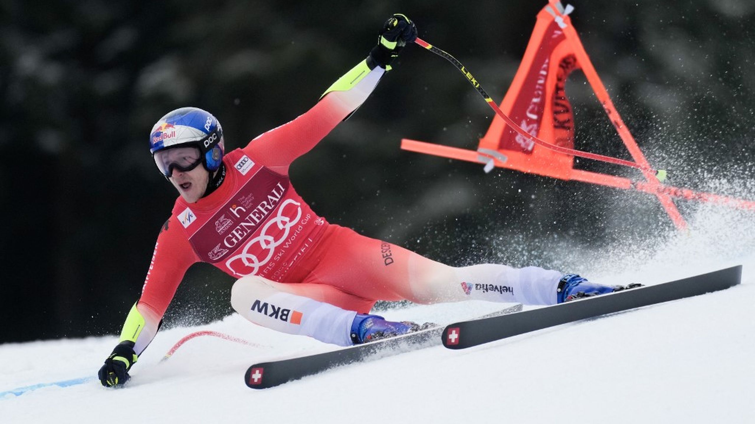 + 0''13 au 1er inter ! Solide sur la mise en action le Suisse, mais tout se joue ensuite, on le sait. MAIS QU'EST-CE QUE C'EST QUE ÇA ??? Il était terriblement direct et s'il réussit à corriger pour rester en ligne, il a perdu de la vitesse... + 0''98 au 3e inter !