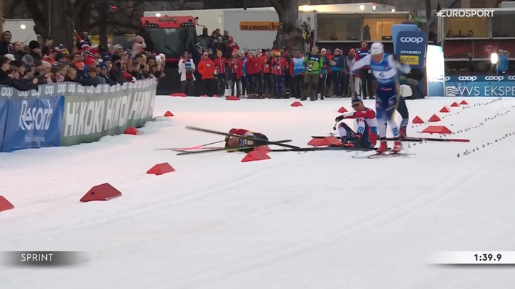 Le choc : pris dans une chute, Klaebo tape fort la tête et abandonne